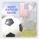 Ya sea una fiesta de cumpleaños, una celebración con temática de fútbol o cualquier evento relacionado con el deporte, los pegatinas de esta fiesta de cumpleaños prometen preparar el escenario para una reunión memorable y llena de acción. La foto es clásica pelota de fútbol en blanco y negro y bandera estadounidense. Puede personalizar a estos pegatinas.