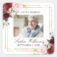 Pegatina del programa conmemorativo del funeral con una foto del fallecido, su nombre, fechas y un elegante marco dorado con rosas burdeos de color acuarela. Para una mayor personalización, haga clic en el enlace "Editar usando la herramienta de diseño" y utilice nuestra herramienta de diseño para modificar esta plantilla. Si necesita ayuda o elementos coincidentes, por favor contáctame.