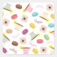 Un pegatina que ofrece una impresión de las tazas de té, de los macarons franceses, y de las flores de la anémona con el texto de "Bonjour".