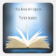 Pegatina de la placa de biblioteca de diseño de libro abierto personalizado con texto de personalizable.