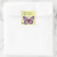 Bonito, imagen vintage de una mariposa púrpura con hojas y flores en un fondo amarillo pálido, aparece en este pegatina de cumpleaños cuadrado. Con el mensaje, "Deseándote un cumpleaños feliz", sería genial usarlo en envíos especiales de cumpleaños, álbumes, decoración y más!