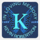 Monograma cuadrado pegatina de tributo en azul y neón azul.