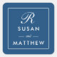 Cuadrada Pegatina de monograma de borde delgado clásico, az