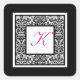 Cuadrada Pegatina de Monograma de Damasco Negro, Blanco y R