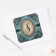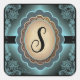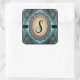Cuadrada Pegatina de monograma de encaje turquesa antiguo