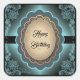 Cuadrada Pegatina de monograma de encaje turquesa antiguo