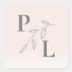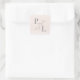 Cuadrada Pegatina de monograma rosado Rubor botánico