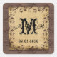 Cuadrada Pegatina de monograma rústico de madera de granero