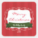 Cuadrada Pegatina de Navidad caprichosa de rayas rojas y ve