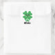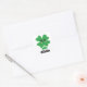 Un pegatina de nombres de hojas de trébol de trébol verde de moda con un tipo de letra de escritura caligráfica moderno. Perfecto para una estética verde natural para el día de los patricks.