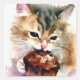 Pequeño gato lindo comiendo un quequito de chocolate, acuarela, pegatina cuadrado. ¡Este lindo gatito se vería genial en cualquier sobre, paquete o regalo!
