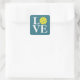 Cuadrada Pegatina de pickleball "LOVE" azul teal