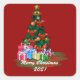 Cuadrada Pegatina de Plaza de Árbol de Navidad