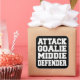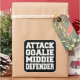 El laxo se posiciona como pegatina. Ataque, arquero, medio, pegatina defensor. Texto gráfico negrita de las posiciones de lacrosse de Attackman, Goalkeeper, Midfield y Defenseman. Elija su propio color de fondo personalizado.