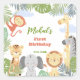 Decorado con imágenes planas de un adorable cachorro de león, leopardo, elefante de bebé, jirafa, cebra y mono, este pegatina de primer año iluminará al fiesta de su hijo.