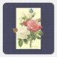 Cuadrada Pegatina de Rosas botánicos de color rosa blanco