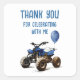 Prepárate para celebrar con estilo con nuestro Pegatina "Gracias por celebrarlo conmigo" que presenta un divertido tema azul de la bicicleta de quad ATV! Perfecto para el cumpleaños de su pequeño corredor, este pegatina le agrega un toque lúdico a sus invitaciones. Personalizable total para coincidir con los detalles de su evento, es la manera ideal para que todos se entusiasmen con una celebración llena de aventura!
