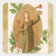 Este pegatina Navidad / cuadrado redondeado de vacaciones tiene un ángel en la parte delantera con un cuerno al lado de algunas ramas de berry.