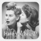 Pegatina cuadrado con una imagen vintage de los años 40 de dos mujeres que compartían los últimos chismes y el texto "¿Has oído?" con letras blancas. Vea la invitación, el confetti, la bolsa de favores, la caja de favores, la etiqueta de favor, la gran bolsa de regalo y el papel de envoltura. Ver toda la colección de Pegatinas Patriotic 40 en los INVITES | Sección Pegatinas y etiquetas.