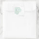 Un pegatina boda con un ilustracion de una flor de hibisco verde acuático. Personaliza con los nombres de la novia y el novio. Busque las invitaciones a la boda coincidentes y más en Jill's Paperie.