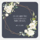 Moderno y a la moda, este diseño pegatina boda presenta una geométrica de cobre de imitación, adornada con motivos florales y florales de color eucalipto blanco y verde, sobre una textura azul marino moderna. Parte de un conjunto de coincidencias. Copyright Elegant Invita. Todos Los Derechos Reservados.