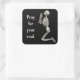 Pegatina negro cuadrado con una imagen de un esqueleto rezando y texto de personalizable. Vea confección, etiqueta y papel de envoltura correspondiente. Vea toda la colección de Pegatinas de Halloween en la categoría CARDS & PEGATINAS en la sección HOLIDAYS.