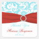 Cuadrada Pegatina del favor de la boda Aqua, Red y White Da