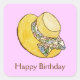 Cuadrada Pegatina del Gorra de paja de cumpleaños feliz