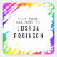 Un pegatina de la placa de la biblioteca con algunas rayas de arcoíris de colores vivos y un gran garabato blanco al otro lado de la parte delantera.