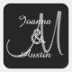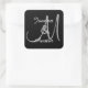 Cuadrada Pegatina del Monograma GRIS NEGRO y PLATA A7