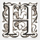 Este capital "H" se fija sobre un fondo de hojas y de volutas. En el centro de la letra hay un diseño de la flor de lis. En esta versión el monograma es un color marrón.