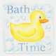 Pato de goma amarillo con burbujas de baño, en un conjunto de pegatinas.