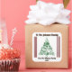 Este alegre pegatina cuadrado presenta un impresionante diseño de árboles de Navidad verde adornado con estrellas y adornos lúdicos.