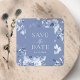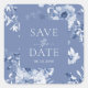 Cuadrada Pegatina floral azul polvoriento "Save the Date"