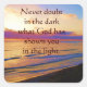 Pegatina cuadrado - Nunca dudes en la oscuridad de lo que Dios te ha mostrado a la luz.