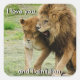 Pegatina cuadrada con la imagen de una leona y su león en una muestra de afecto. Pin opcional. Vea la colección completa de Pegatinas de Naturaleza y Vida Silvestre en la sección CARDS, POSTCARDS & PEGATINAS.