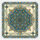 Este pegatina presenta un intrincado patrón de vidrio manchado de manala en verde verde azulado, con diferentes tonos de azul y agua, con acentos dorados en un fondo crudo.