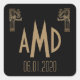 Cuadrada Pegatina Monograma de Black and Gold Art Deco Peac
