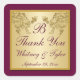 Cuadrada Pegatina Monograma de vino de ciruela y Damasco fl