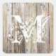 Cuadrada Pegatina Monogramado de Weathered Wood