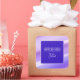 Cuadrada pegatina morado "Feliz Cumpleaños"