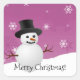 Cuadrada Pegatina navideña de invierno de invierno rosa