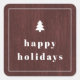 Cuadrada Pegatina Navideña de Madera de Árbol Rústico Rojo