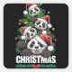 Cuadrada Pegatina navideña de Panda juguetona