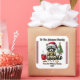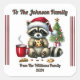 Un delicioso pegatina cuadrado añade un toque alegre a los paquetes de vacaciones. Presenta un impresionante mapache en un sombrero de Santa, y anuncia la alegría de regalar mientras está rodeado de decoraciones festivas y un acogedor escenario invernal, perfecto para la temporada de Navidades.