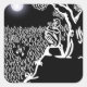 Dibujo de la sartén de dios tocando sus tuberías bajo un árbol a la luz de la luna, con bailarines bailando alrededor de una hoguera en un bosque al fondo.