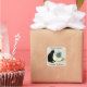 Pegatina personalizado de la placa de biblioteca de gatos y libros con fondo ondulado de color sabio, con texto de personalizable.
