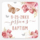 Cuadrada Pegatina personalizado del bautismo de mariposa fl