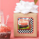 Pegatina cuadrado con una imagen de un letrero retro de los años 50, reloj de invierno rojo y un vintage servidor femenino de los años 50 en un tablero de ajedrez blanco y negro. Ver coincidencia pegatina de guardar la fecha, invitación, invitación "Rótulo Retro Diner Blank de los 50s", tarjeta, sobre y etiqueta "50s Retro Diner Gracias". Ver toda la colección de Pegatinas de los años 50 en INVITES | Sección Pegatinas y etiquetas.