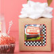 pegatina cuadrado con una imagen de un letrero retro de los años 50, un reloj rojo de la cena y un vintage servidor femenino de los años 50 en un tablero de ajedrez blanco y negro. Consulte las invitaciones "50s Retro Diner" y "50s Retro Diner Blank Rótulo", la tarjeta "50s Retro Diner Gracias", sobre, bolsos de favores, cajas de favores, etiquetas, etiquetas y pegatinas. Ver toda la colección de Pegatinas Nifty 50s en INVITES| Sección Pegatinas y etiquetas.
